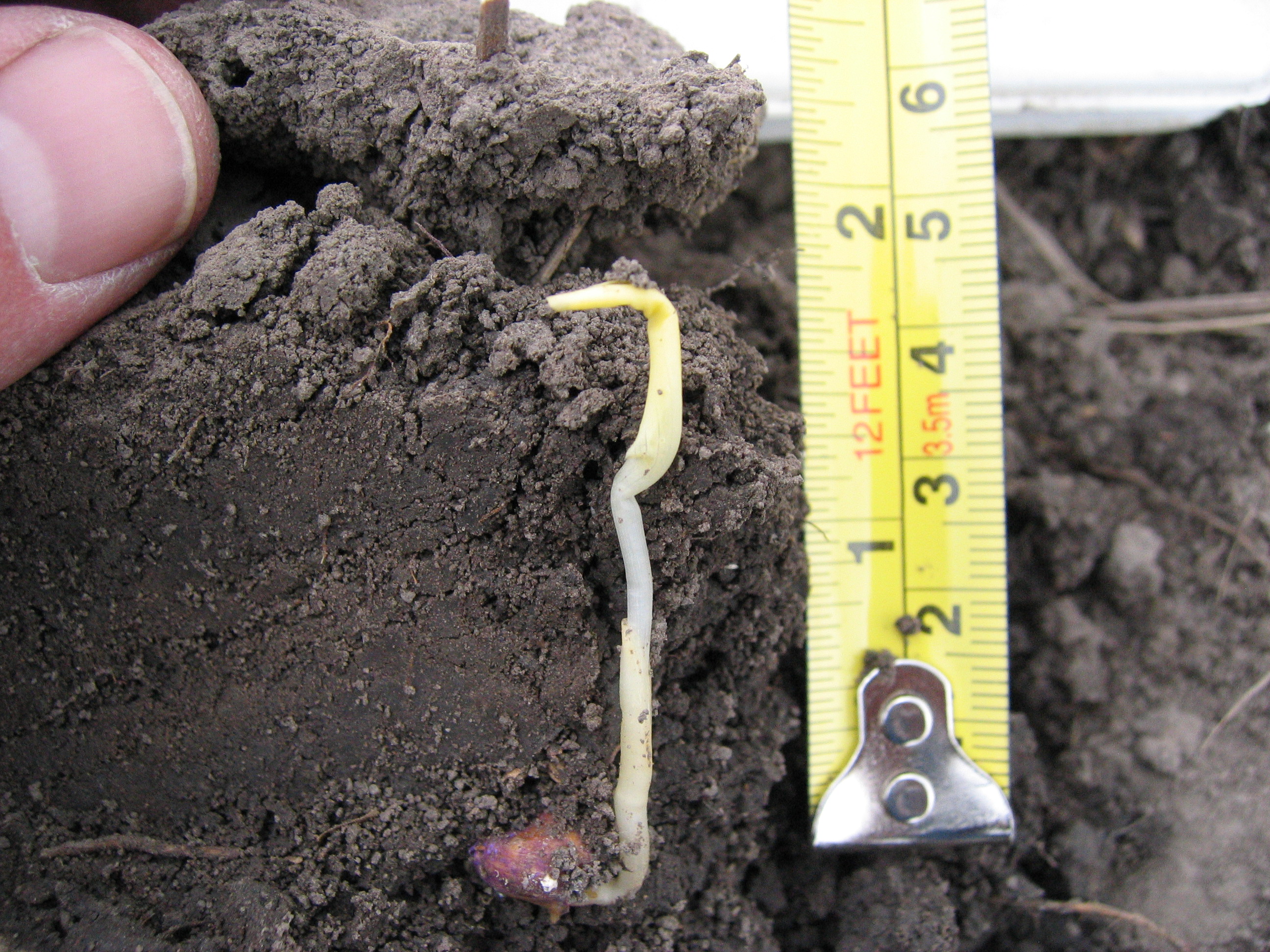 - The square-bottom spade helps to visually see emergence issues that would be difficult to reveal with a trowel digging from the top down.